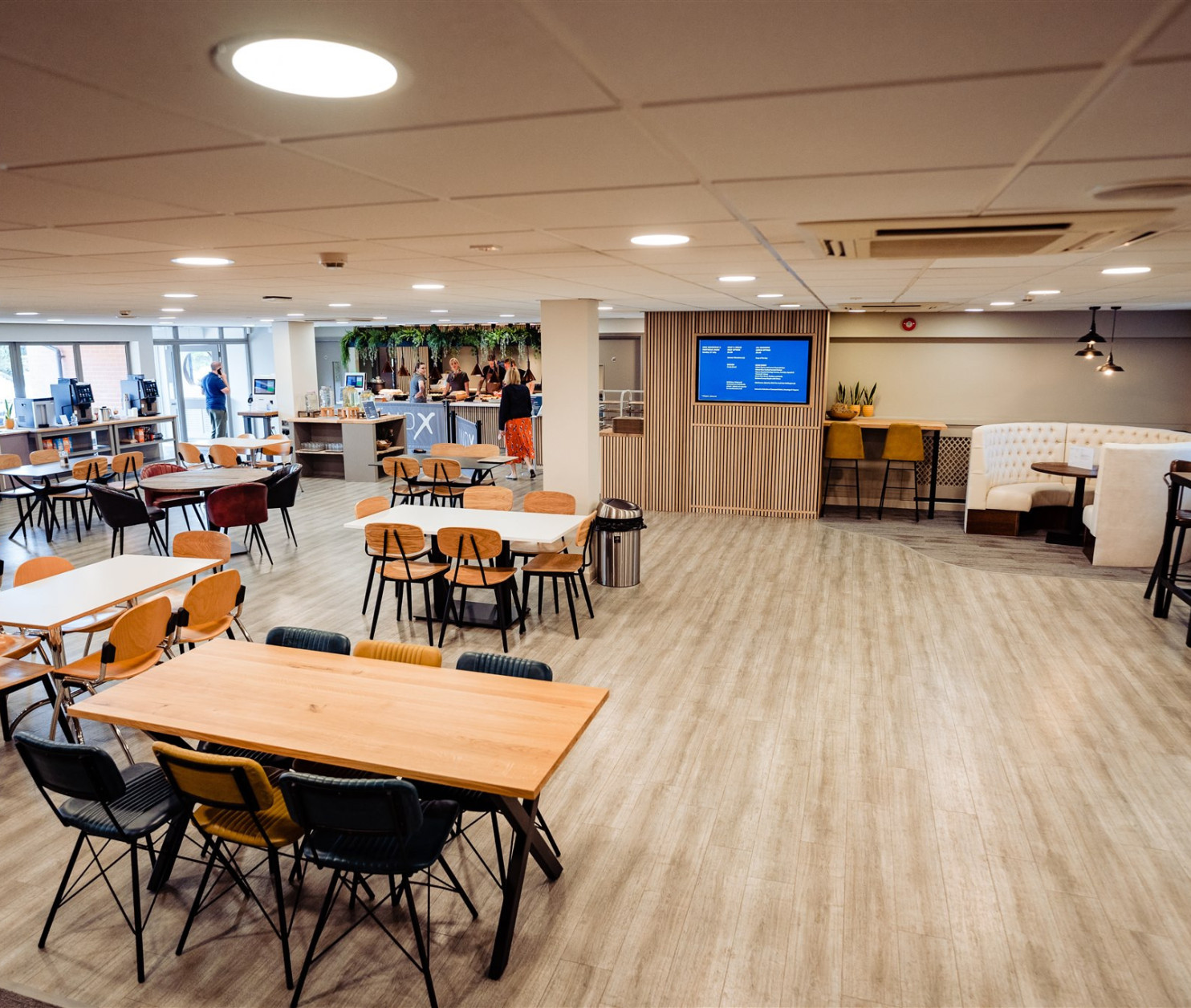 This contemporary, ground floor hospitality space provides a memorable dining experience for up to 120 seated guests or 250 standing attendees. Featuring sleek lines, minimalist décor, and a harmonious blend of warm, natural materials and stylish, urban elements. From classic comfort food, to innovative, contemporary cuisine, our award-winning catering team can create a diverse array of dishes to suit all tastes.